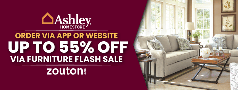 Users can save up to 45% on Ashley Furniture discounts available on Zouton.com. Zouton has a large collection of Ashley Furniture coupons that can allow you to save up on your orders. Zouton.com gets the latest Ashley Furniture coupons and offers available on Zouton.com. Zouton has an array of promo codes for Ashley Furniture that are verified regularly. The latest deals available for Ashley Furniture on Zouton are on the app and website.