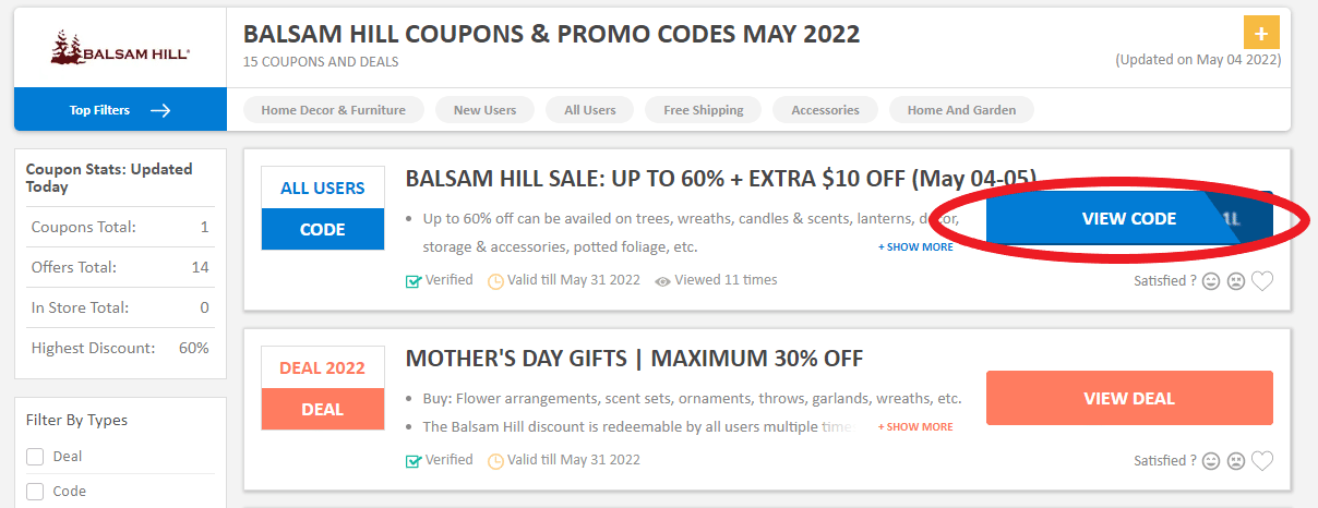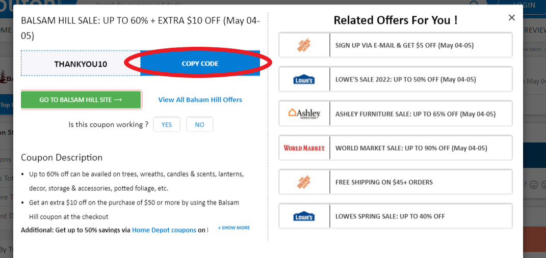Go to the Balsam Hill promo codes and coupons page first