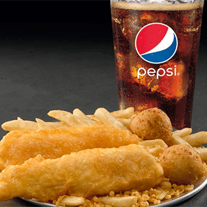 2 Pc chicken, 1 signature batter, 2 hushpuppies, and 1 drink