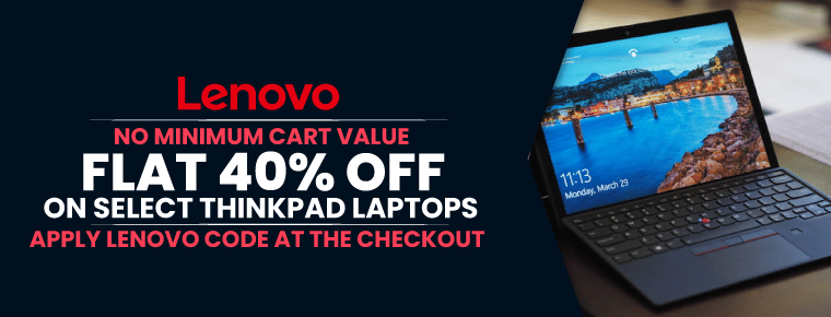 Want to enjoy buying ThinkPad laptops from Lenovo but budget is stopping you? Worry no more! Use this Lenovo deal and enjoy unbelievable savings of flat 40% on your bill.