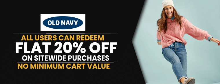 Give this holiday shopping spree a merry twist of savings and get flat 20% Off on sitewide purchases by Old Navy. Use the Old Navy’s Promo Code and splurge on your holiday needs with savings on every purchase.