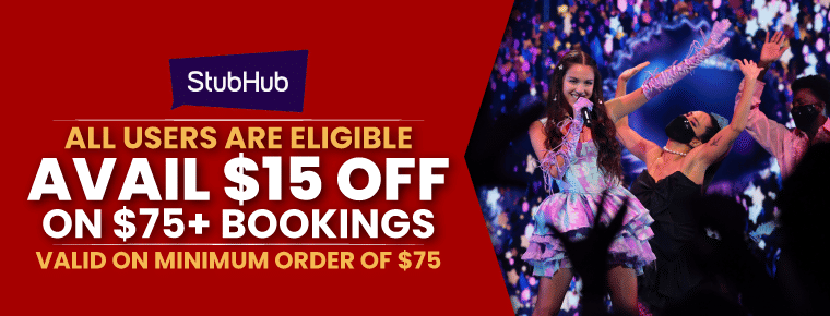 With StubHub Credit Card Deals, you can get a flat $15 Off on $75+ Bookings. All users can redeem this deal by using the StubHub coupon code SAVE15 at checkout.
