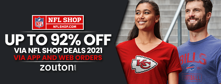 NFL Shop is having up to 92% off on all products Product categories: Clothing, footwear, sports goods, bags, etc. Available for online purchase via app and web orders. Combinable with existing NFL Shop coupons for extra savings. Read about the NFL Shop free shipping at Zouton.